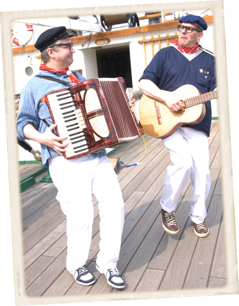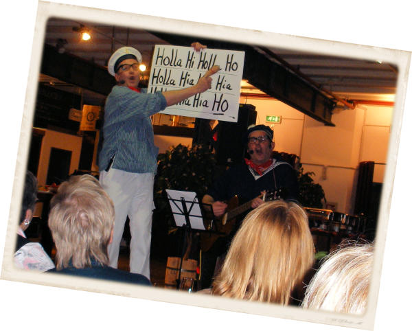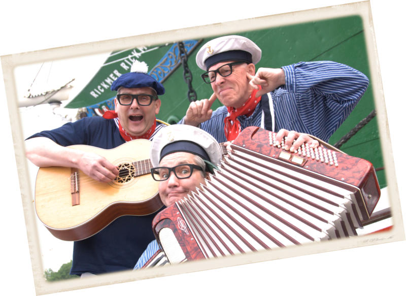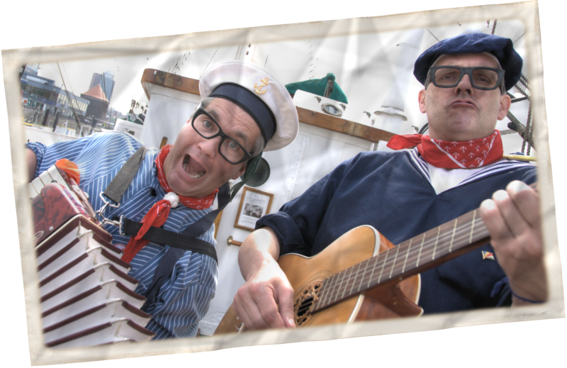 Vom angekündigten 17 köpfigen Hamburger Shantychor „Die Möwenschietbüddels“ haben nur Harald & Harald den Weg zum Auftrittsort geschafft. Für die anderen 15 gilt: Labskaus immer nur frisch verzehren! Gute Besserung!Da lassen sich die beiden leichtlebigen Schwermatrosen nicht lumpen. Frei nach dem Motto „Jetzt mal Butter bei die Fische“ verwandeln sie das Publikum in einen Shantychor. Natürlich werden auch allerlei Döntjes vertellt, verwirrende Zauberkunststücke gezeigt und reichlich Seemannsgarn gesponnen.Die Shanty Show kann mit 2 oder 3 Darstellern gespielt werden.Für eine Publikumsgröße bis ca. 150 Gästen ist eine mobile Tonanlage vorhanden.